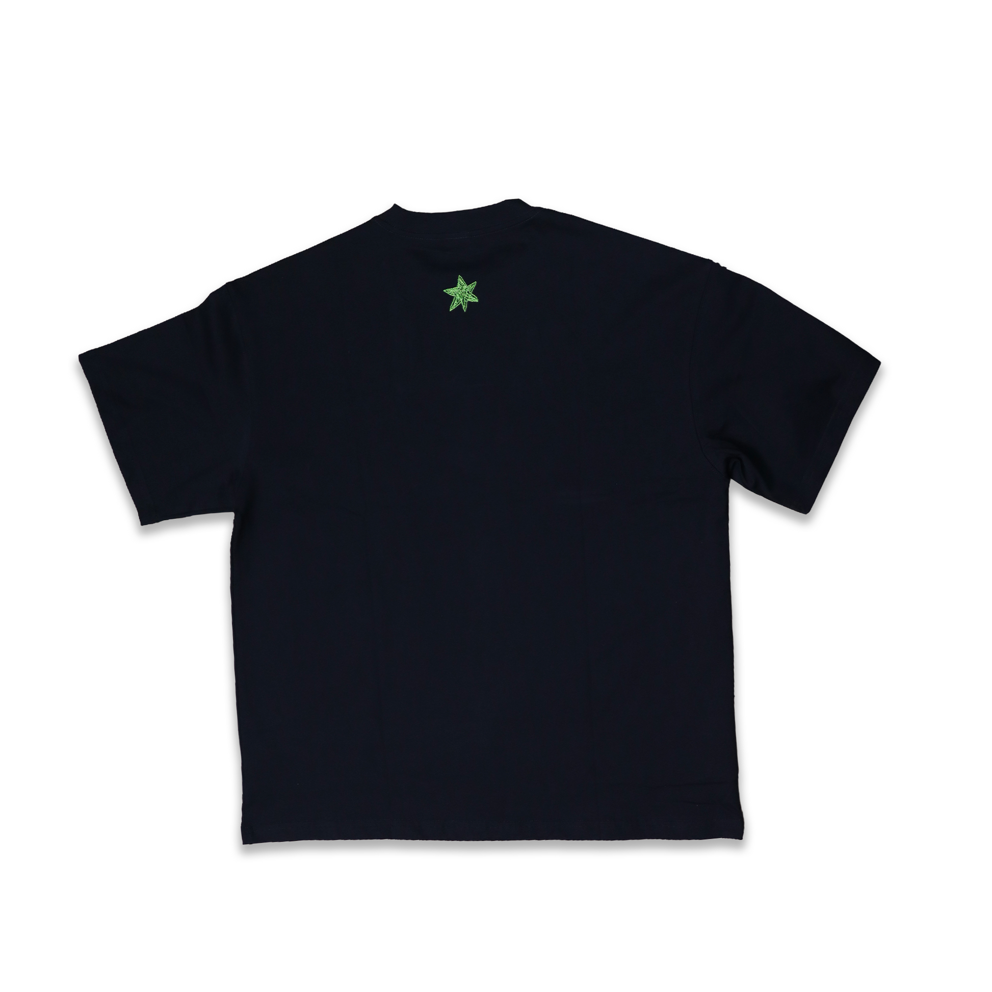 Na zadní straně se nachází výšivka s motivem ikonické zelené hvězdy, umístěné těsně pod krkem. Přední strana je prázdná.