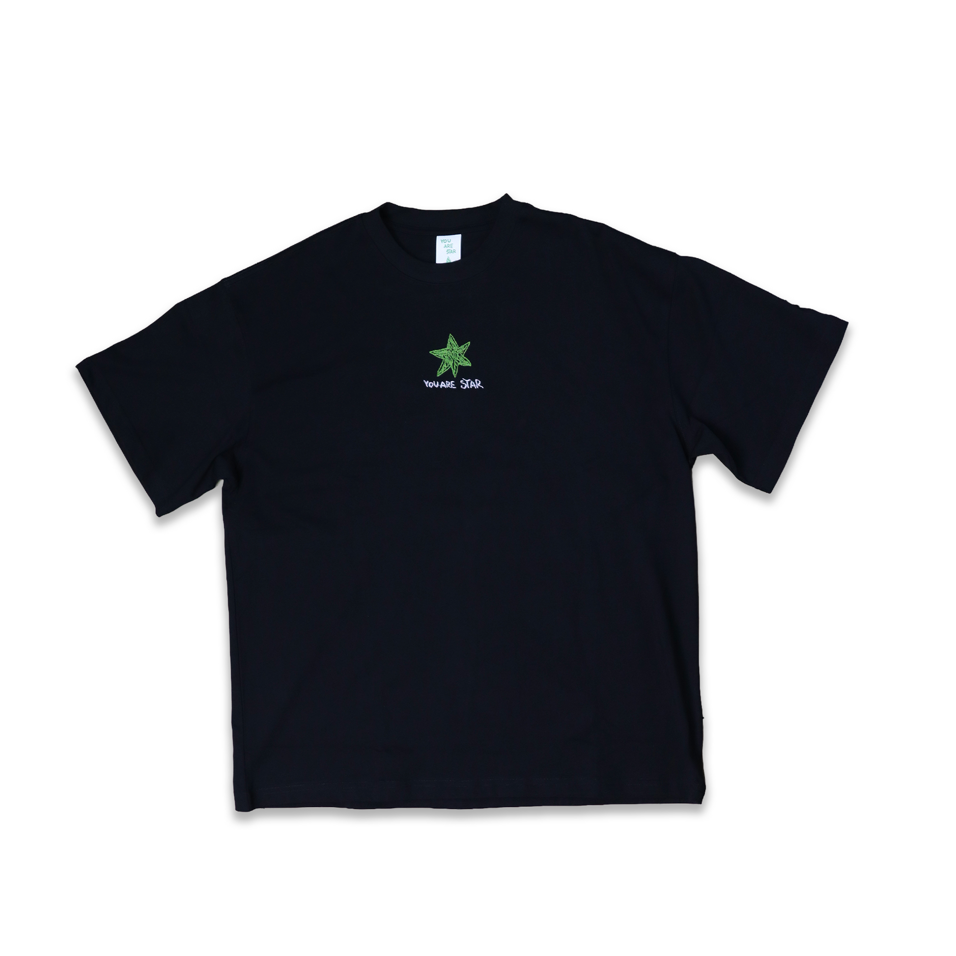 Na přední straně se nachází výšivka s motivem ikonické zelené hvězdy, umístěné na středu hrudníku. Lehce pod ní se nachází vyšitý text "you are star".